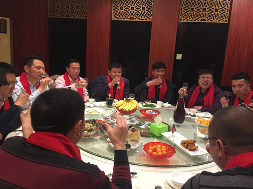 總帶領(lǐng)公司員工向來賓敬酒,將慶典晚宴的歡慶氣氛推向高潮。
