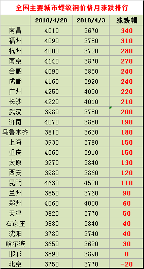 在鋼價上漲的帶動下,鋼企盈利回升。據中鋼協(xié)數據,一季度會員鋼鐵企業(yè)實現利潤總額569.32億元,分月情況看,1月份利潤總額208.17億元,2月份162.96億元,3月份195.26億元。而且從目前原料端的情況看,焦炭和鐵礦石庫存處于高位,大漲的可能性不大,但是鋼坯的庫存不斷下降,截止4月28日,唐山鋼坯庫存量為76.20萬噸,下降13.50萬噸,同時今日鋼坯追漲10元,報價3580元/噸,成本支撐依舊強硬。
