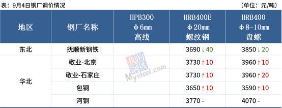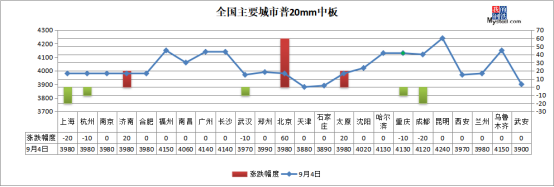 4日,國內(nèi)3家建材鋼廠上調(diào)出廠價10-20元/噸,1家建材鋼廠下調(diào)出廠價20-40元/噸。
