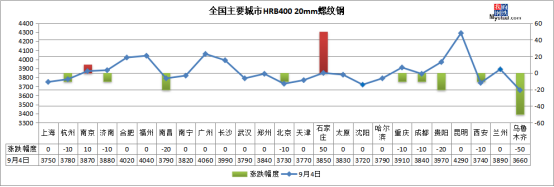 建筑鋼材:9月4日,全國25個主要城市20mm三級螺紋鋼均價3864元/噸,較上個交易日下跌3元/噸。昨日夜盤期螺明顯跳水,市場心態(tài)趨于謹(jǐn)慎,上午國內(nèi)建筑鋼材價格以穩(wěn)為主。市場高價資源成交有所放緩,目前絕大多數(shù)地區(qū)螺紋現(xiàn)貨資源較為充足,庫存同比仍處于相對高位。預(yù)計短期國內(nèi)建筑鋼材價格或高位盤整運(yùn)行。