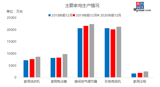 據(jù)悉,國家統(tǒng)計(jì)局公布了我國家用電器2020年11月的產(chǎn)量數(shù)據(jù),房間空氣調(diào)節(jié)器生產(chǎn)1771.6萬臺(tái),同比增加5.5%;家用電冰箱生產(chǎn)898.9萬臺(tái),同比增長22.5%;家用洗衣機(jī)生產(chǎn)856.6萬臺(tái),同比增長13.1%;彩色電視機(jī)生產(chǎn)1962.2萬臺(tái),同比增長5.1%。細(xì)分不同電器來看,空調(diào):12月份空調(diào)企業(yè)的排產(chǎn)量繼續(xù)呈增長態(tài)勢(shì),實(shí)際產(chǎn)量有望突破2100萬臺(tái),創(chuàng)單月歷史新高。冰洗:產(chǎn)量維持高增長。彩電:由于海外疫情仍然不樂觀,預(yù)計(jì)對(duì)于彩電的需求仍將持續(xù),將繼續(xù)帶動(dòng)彩電產(chǎn)量的增長。