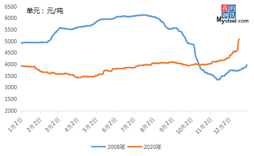 很多同行業(yè)的客戶也是表示從業(yè)這么多年,對(duì)于近期價(jià)格的快速拉漲也有點(diǎn)措手不及,那么為何在12月份市場(chǎng)還能有如此漲勢(shì)呢?我們認(rèn)為和2008年的漲勢(shì)有異曲同工之處,但也存在今年的不同點(diǎn)就是有需求端的支撐。接下來,我們來細(xì)分看到底有哪些方面的因素來共同助推價(jià)格的大幅上漲。