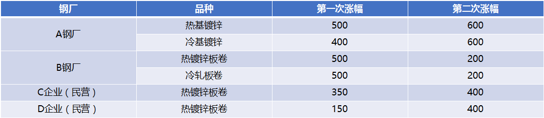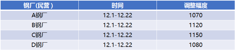 表2:部分鋼廠12月兩次調(diào)價(jià)幅度